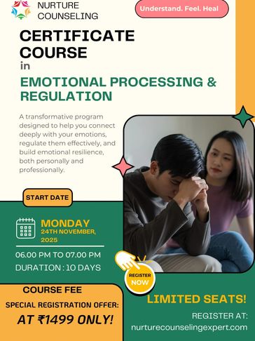 10-day online certificate course by Nurture Counseling is designed to help you understand the science and experience of emotions, build deeper self-awareness, and strengthen your ability to regulate emotions in yourself and others. Through expert-led interactive sessions, you’ll learn practical strategies, evidence-based tools, and reflective techniques to enhance emotional resilience and therapeutic effectiveness.